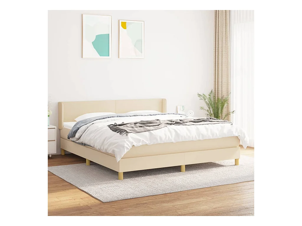 Giroletto a Molle con Materasso Crema 180x200 cm in Tessuto