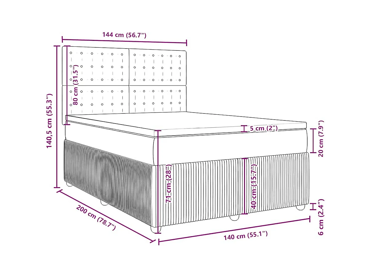 Struttura Letto Pouf con Materasso 140x200 cm in Velluto