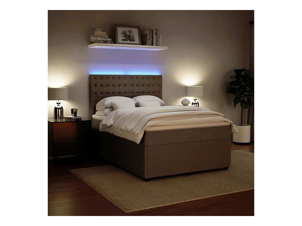 Pouf Letto con Materasso e LED Tortora 140x200 cm in Tessuto