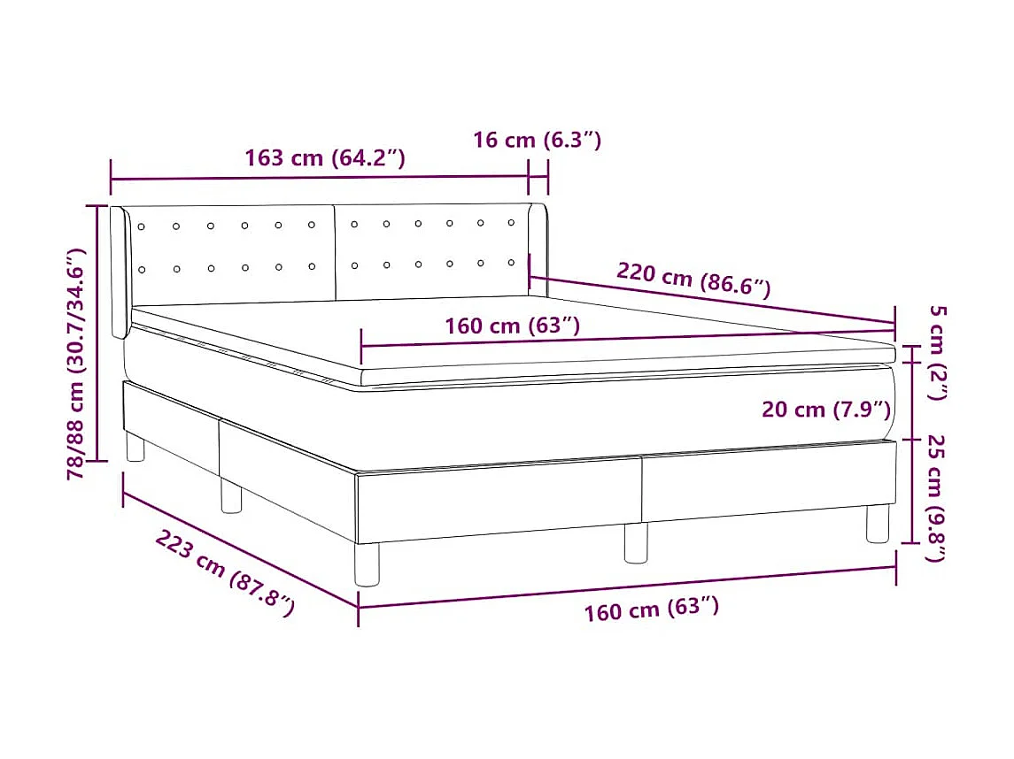 Giroletto a Molle con Materasso Grigio Chiaro 160x220cm Velluto