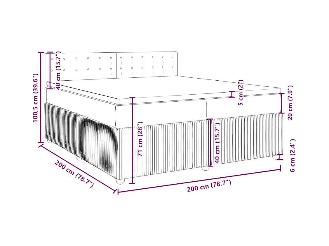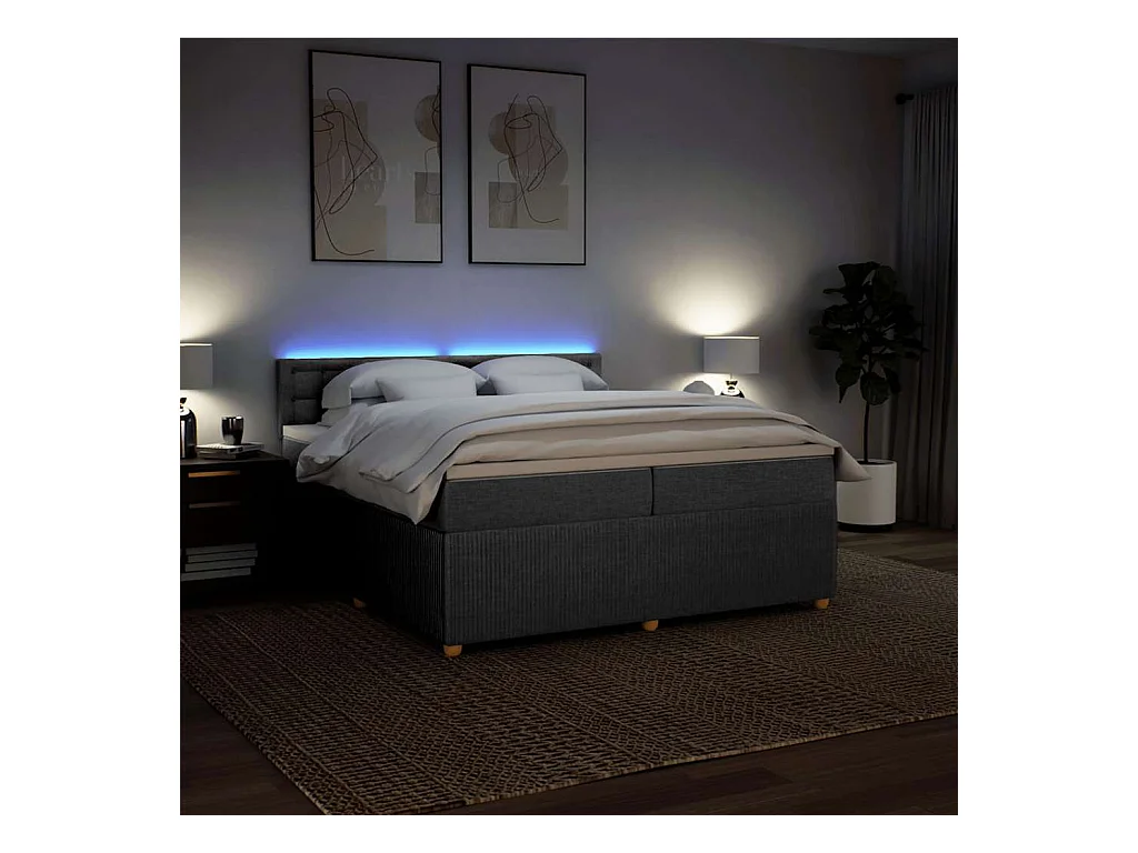 Giroletto a Molle con Materasso Grigio Scuro 200x200 cm Tessuto