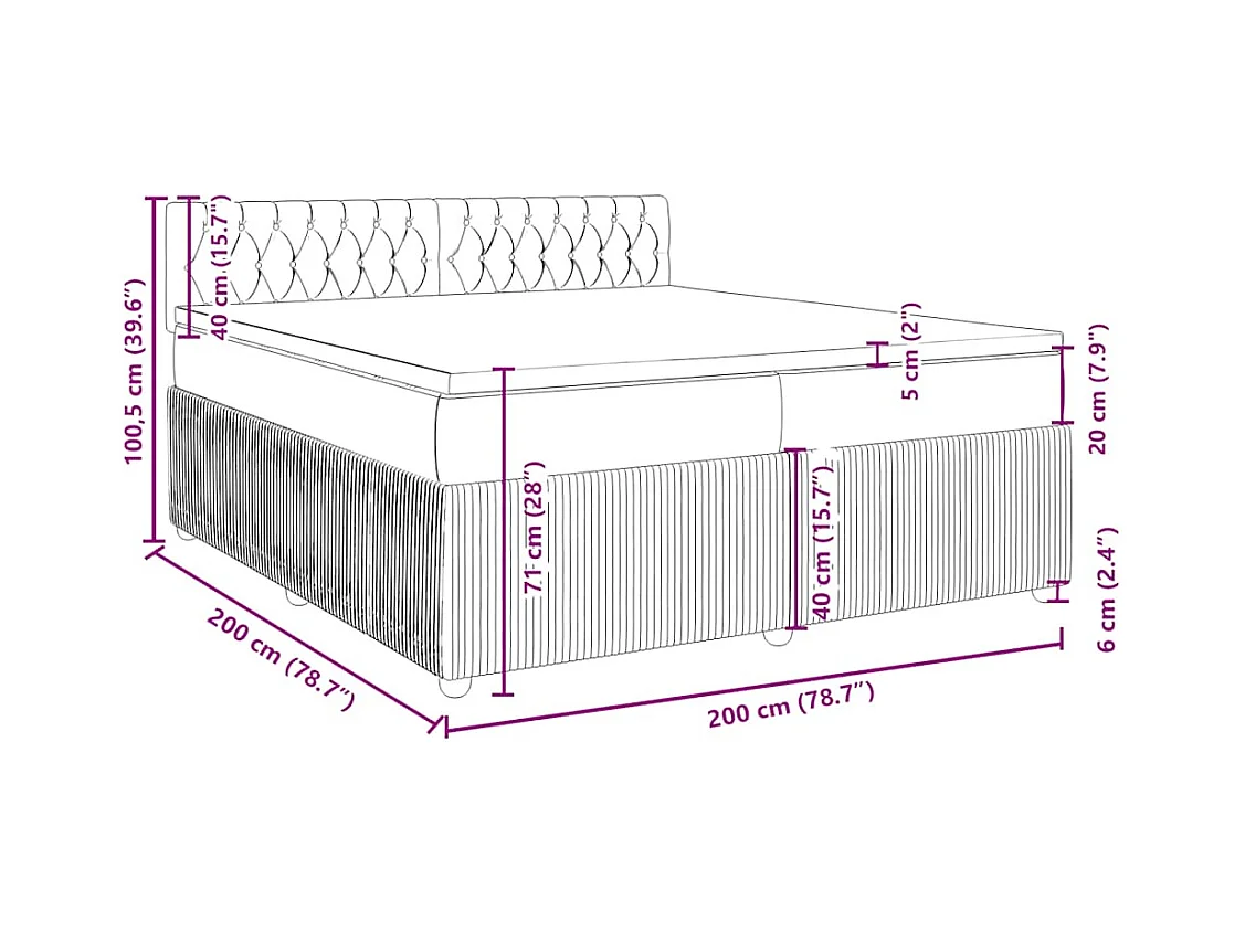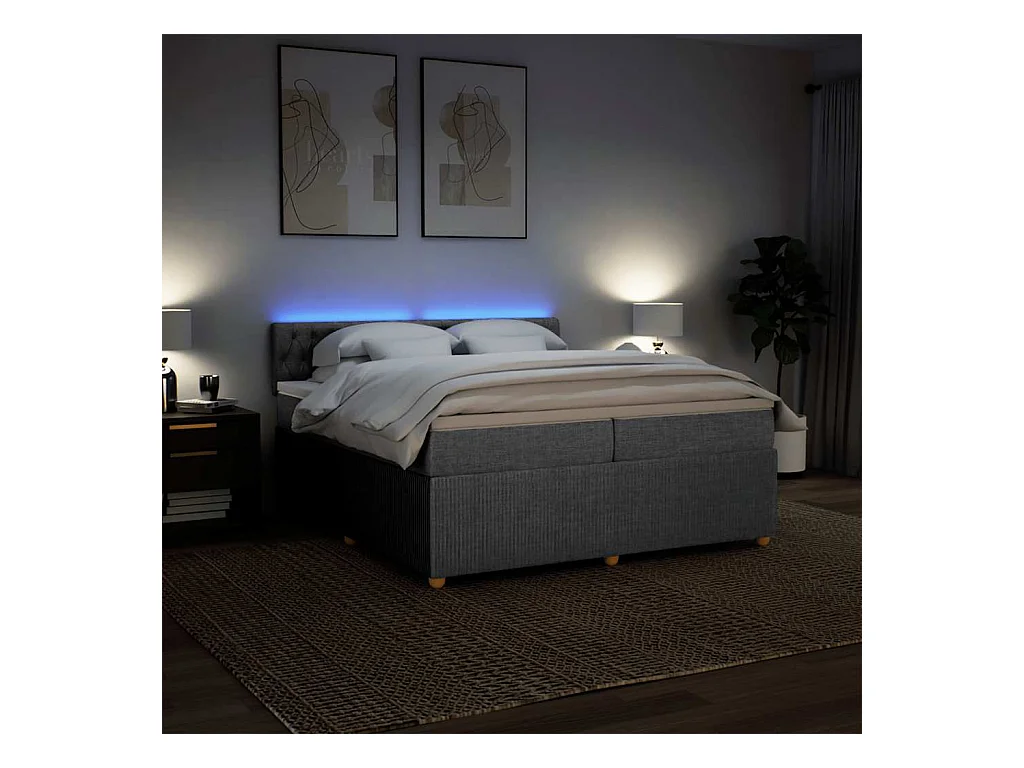 Giroletto a Molle con Materasso Grigio Scuro 200x200 cm Tessuto