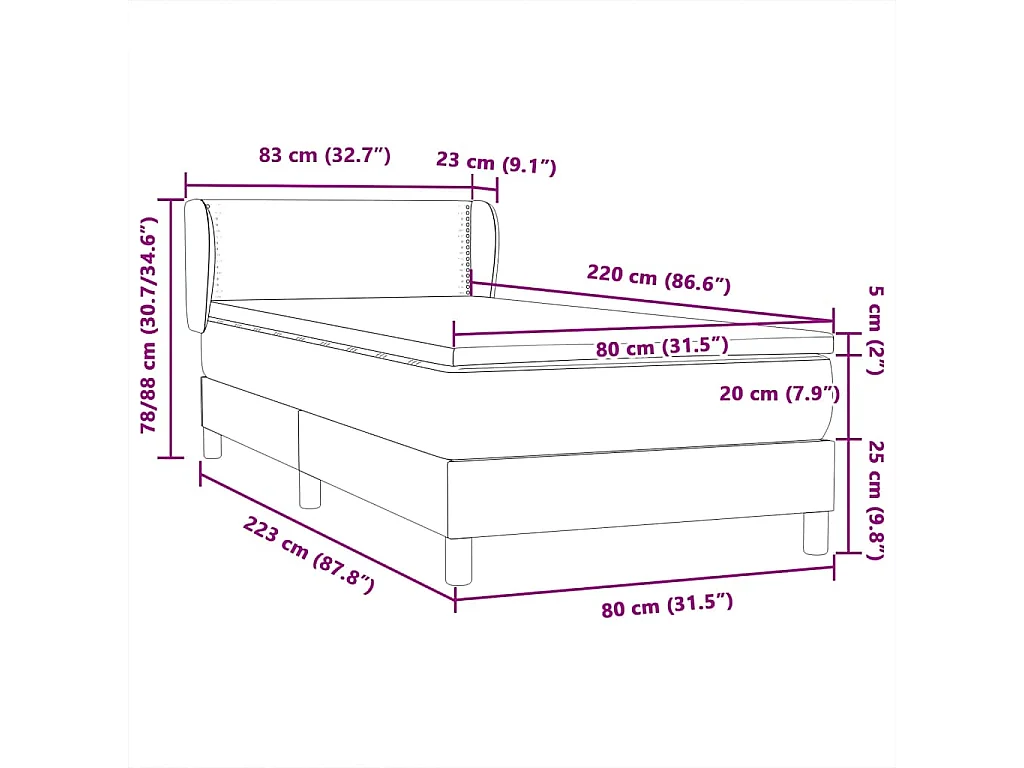 Giroletto a Molle con Materasso Grigio Scuro 80x220 cm Velluto