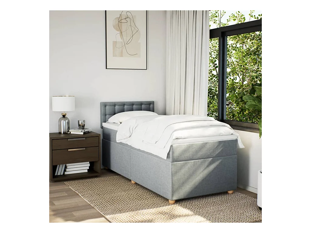 Giroletto a Molle con Materasso Grigio Chiaro 90x190 cm Tessuto