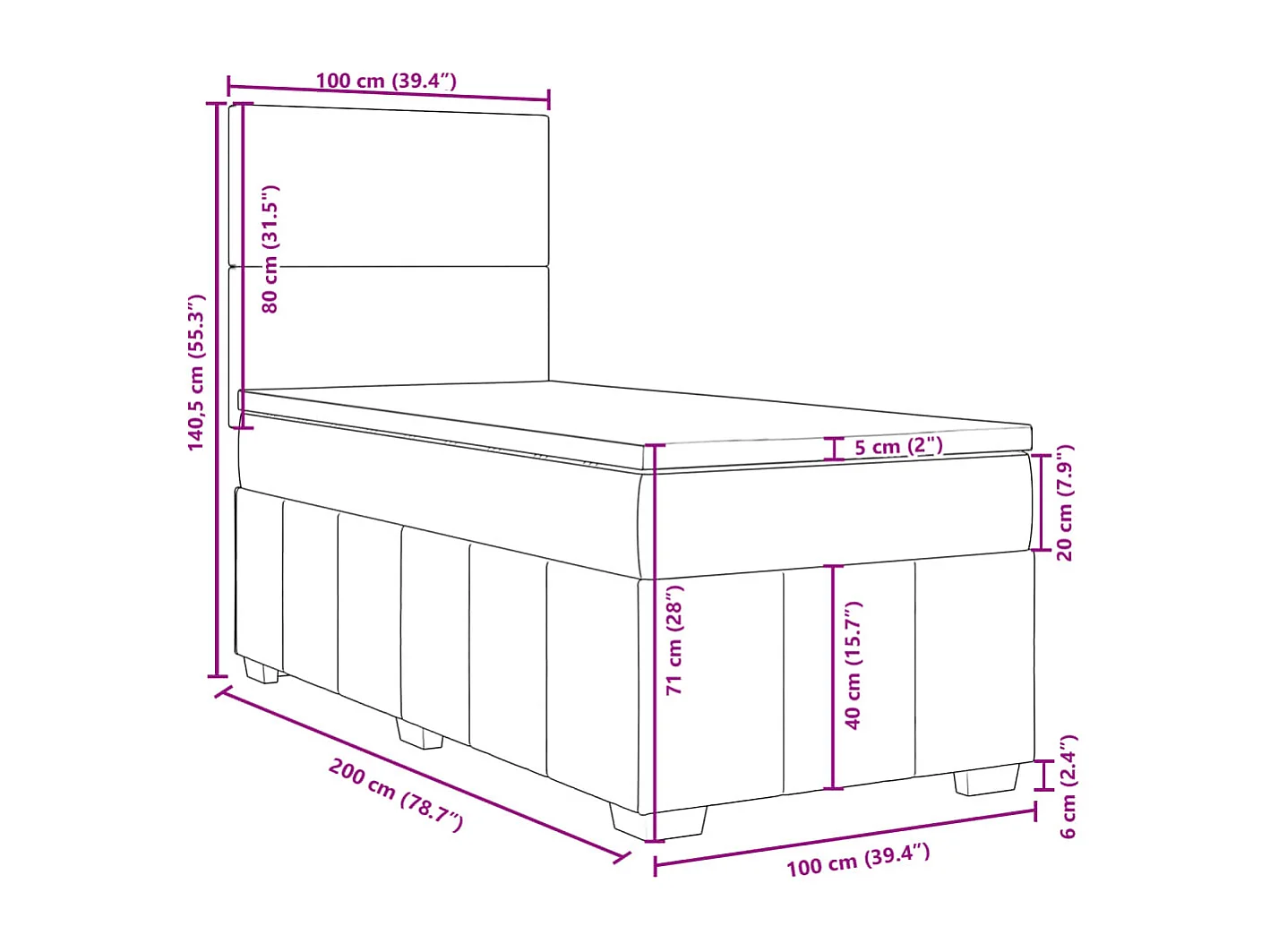 Giroletto a Molle con Materasso Grigio Scuro 100x200 cm Tessuto