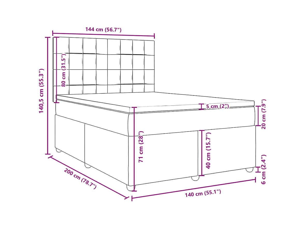 Giroletto a Molle con Materasso Grigio Scuro 140x200cm Tessuto