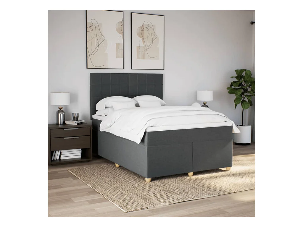 Giroletto a Molle con Materasso Grigio Scuro 160x200 cm Tessuto