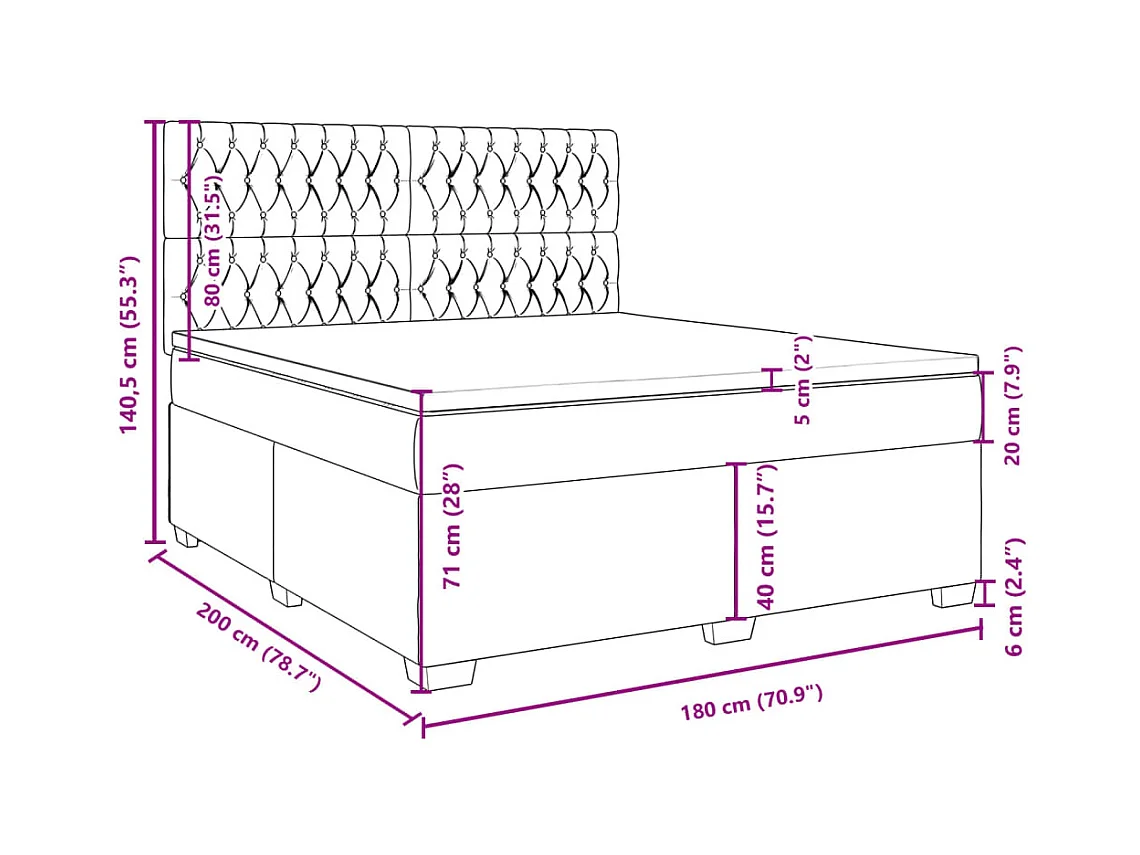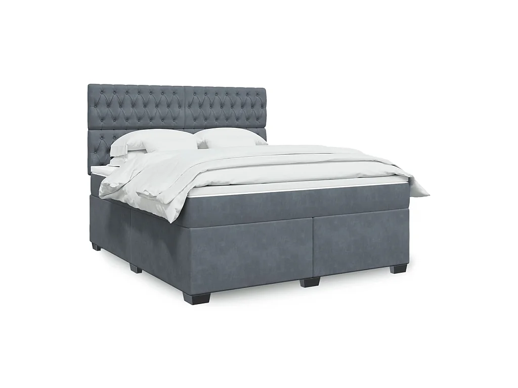 Giroletto a Molle con Materasso Grigio Scuro 180x200 cm Velluto