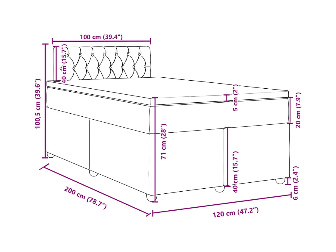 Giroletto a Molle con Materasso Marrone Scuro 120x200cm Tessuto