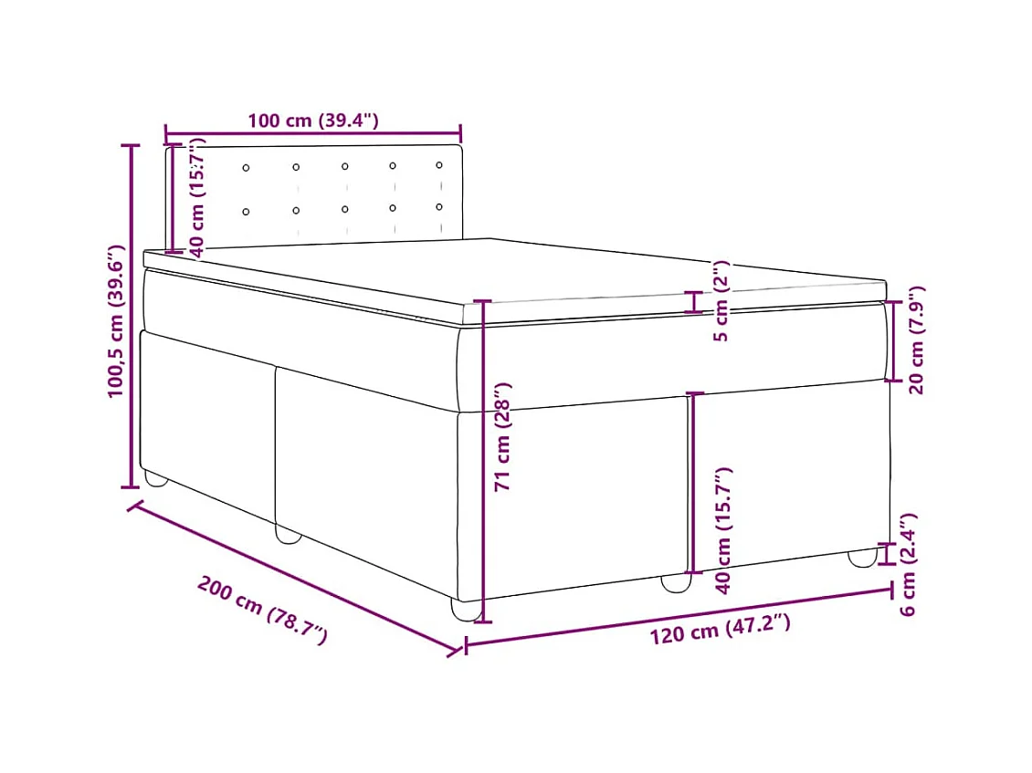 Giroletto a Molle con Materasso Marrone Scuro 120x200cm Tessuto