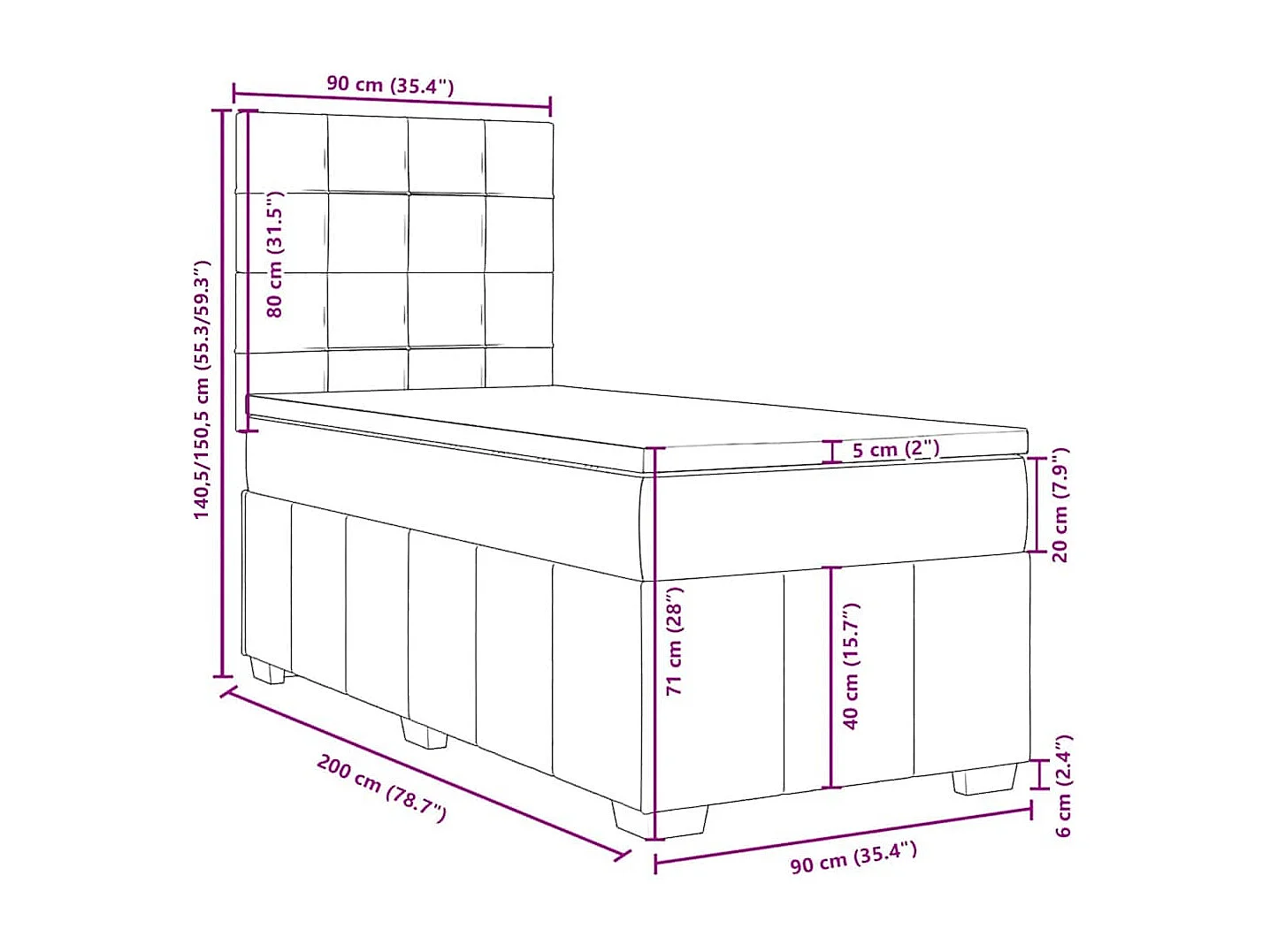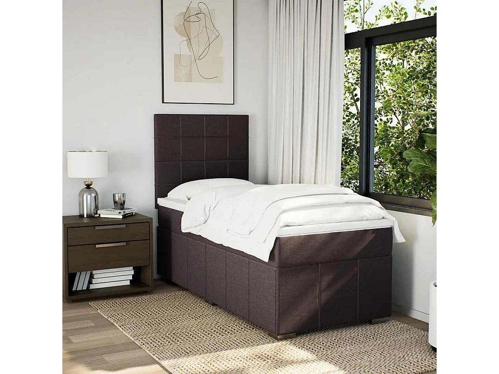 Giroletto a Molle con Materasso Marrone Scuro 90x200 cm Tessuto