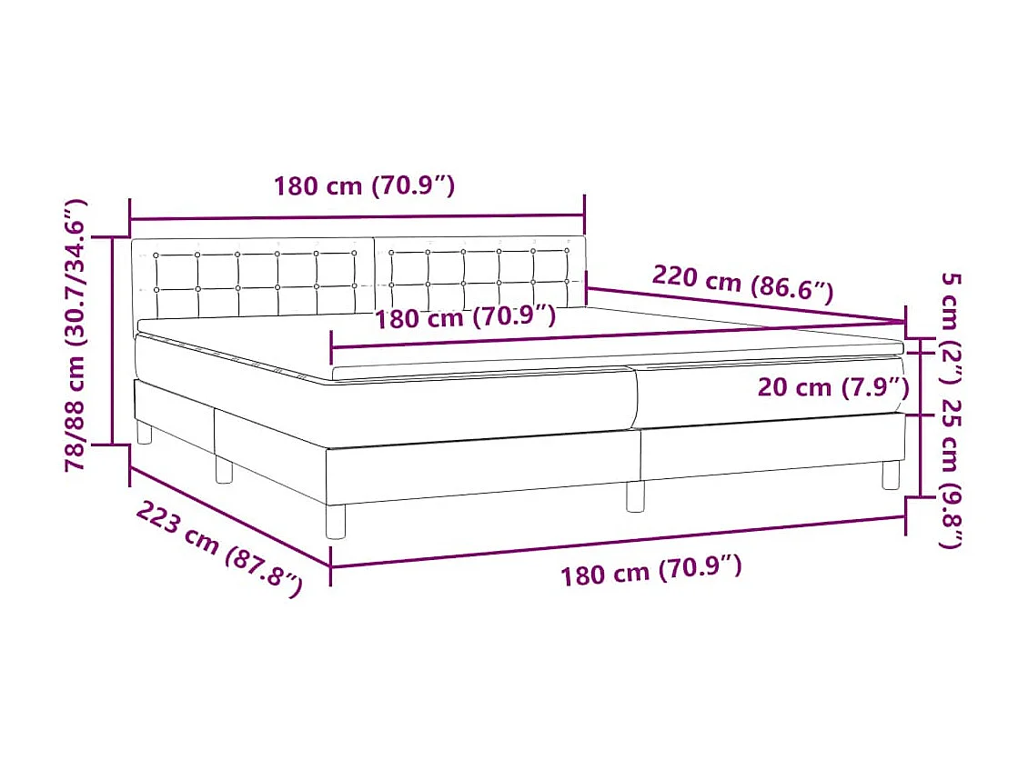 Letto a Molle senza Materasso Nero 180x220 cm in Velluto