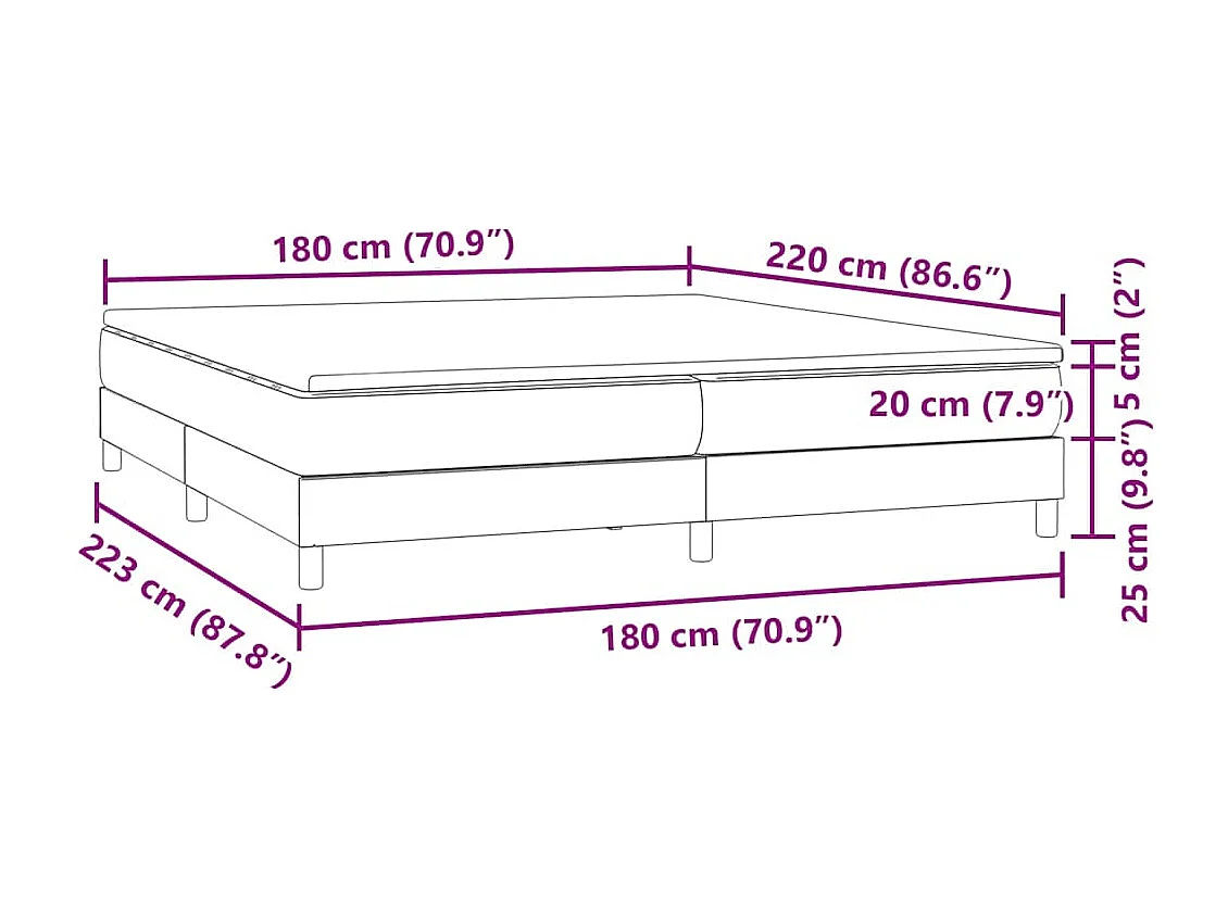 Letto a Molle senza Materasso Nero 180x220 cm in Velluto
