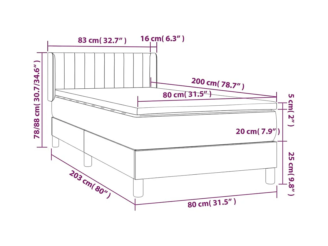 Giroletto a Molle con Materasso Grigio Scuro 80x200 cm Velluto