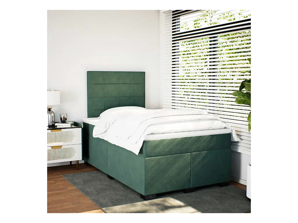 Giroletto a Molle con Materasso Verde Scuro 120x190 cm Velluto