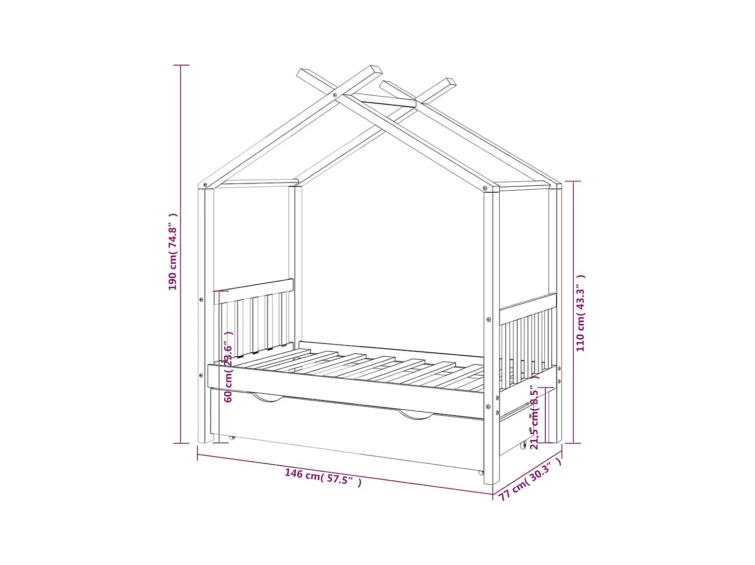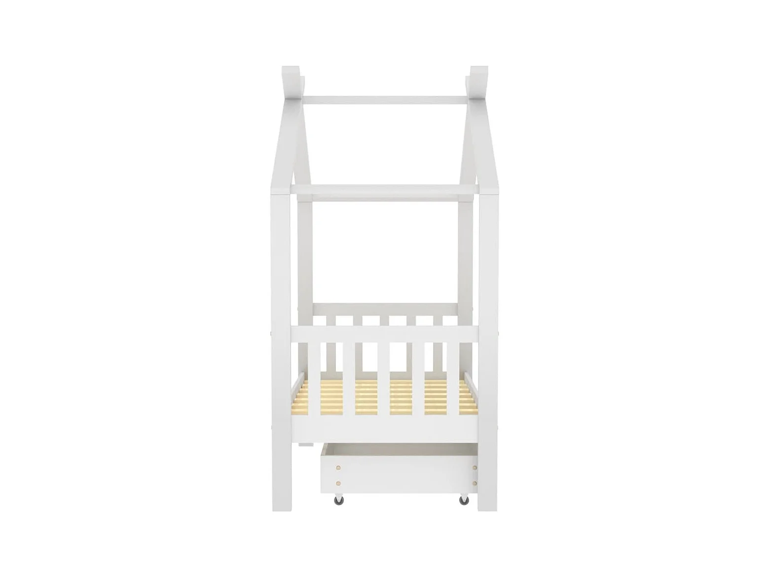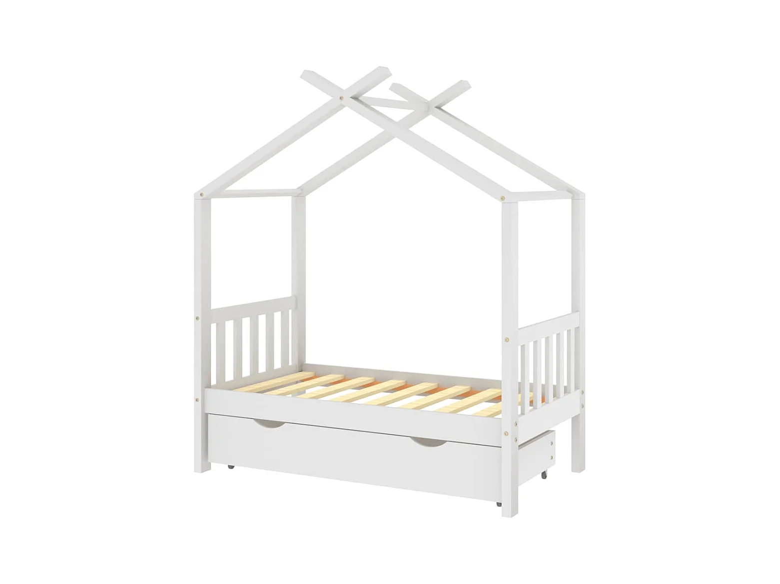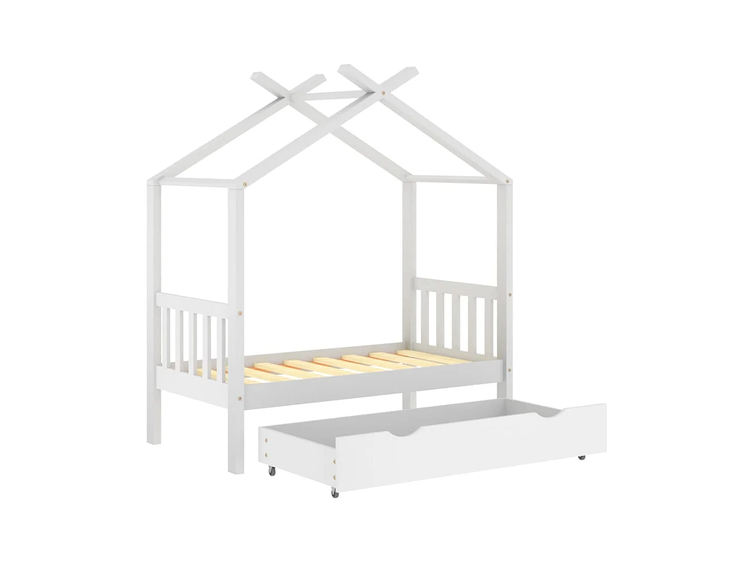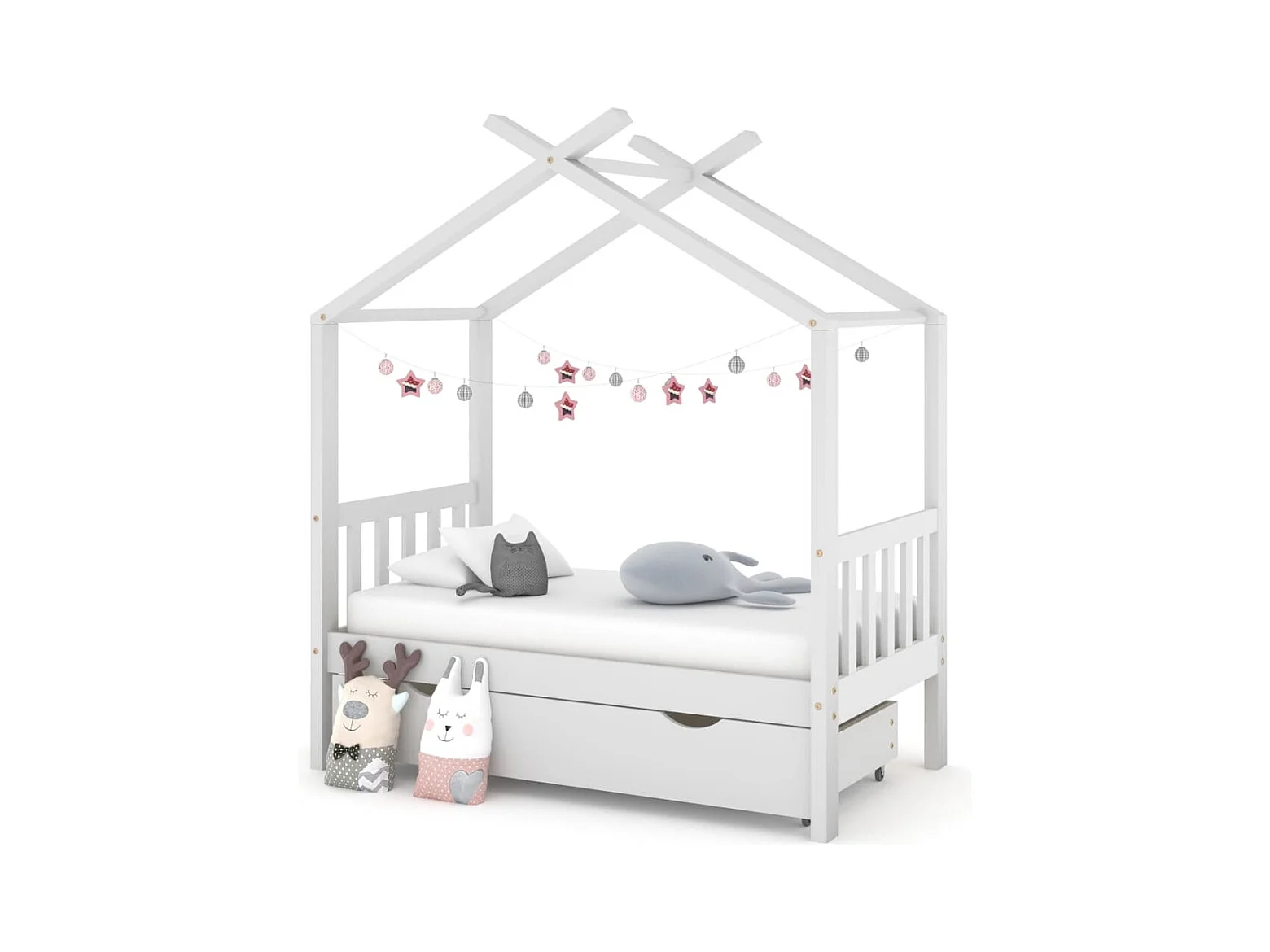 Giroletto Bambini con Cassetto Bianco Legno di Pino 70x140 cm
