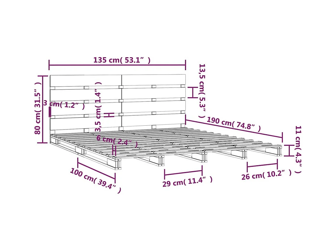 Letto senza Materasso Bianco 135x190 cm Legno Massello di Pino