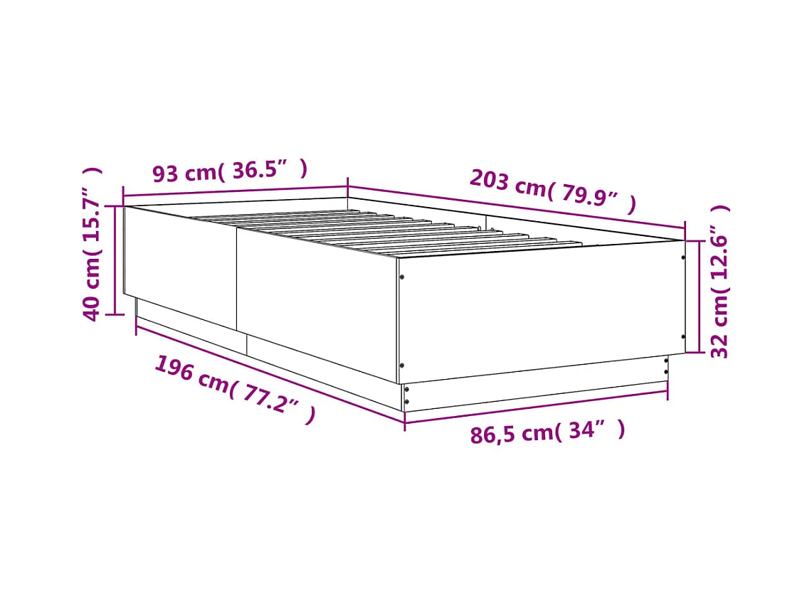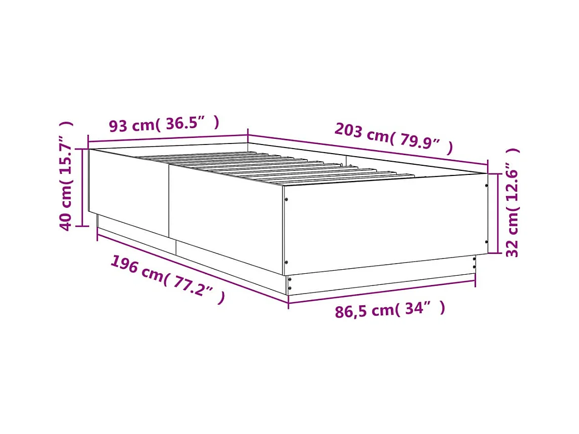 Giroletto con Testiera e LED Bianco 90x200 cm