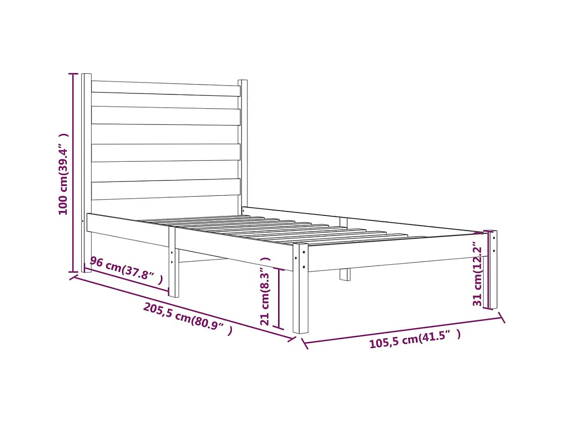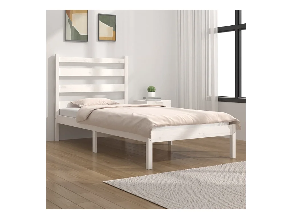 Letto a Pallet Bianco 100x200 cm in Legno Massello di Pino