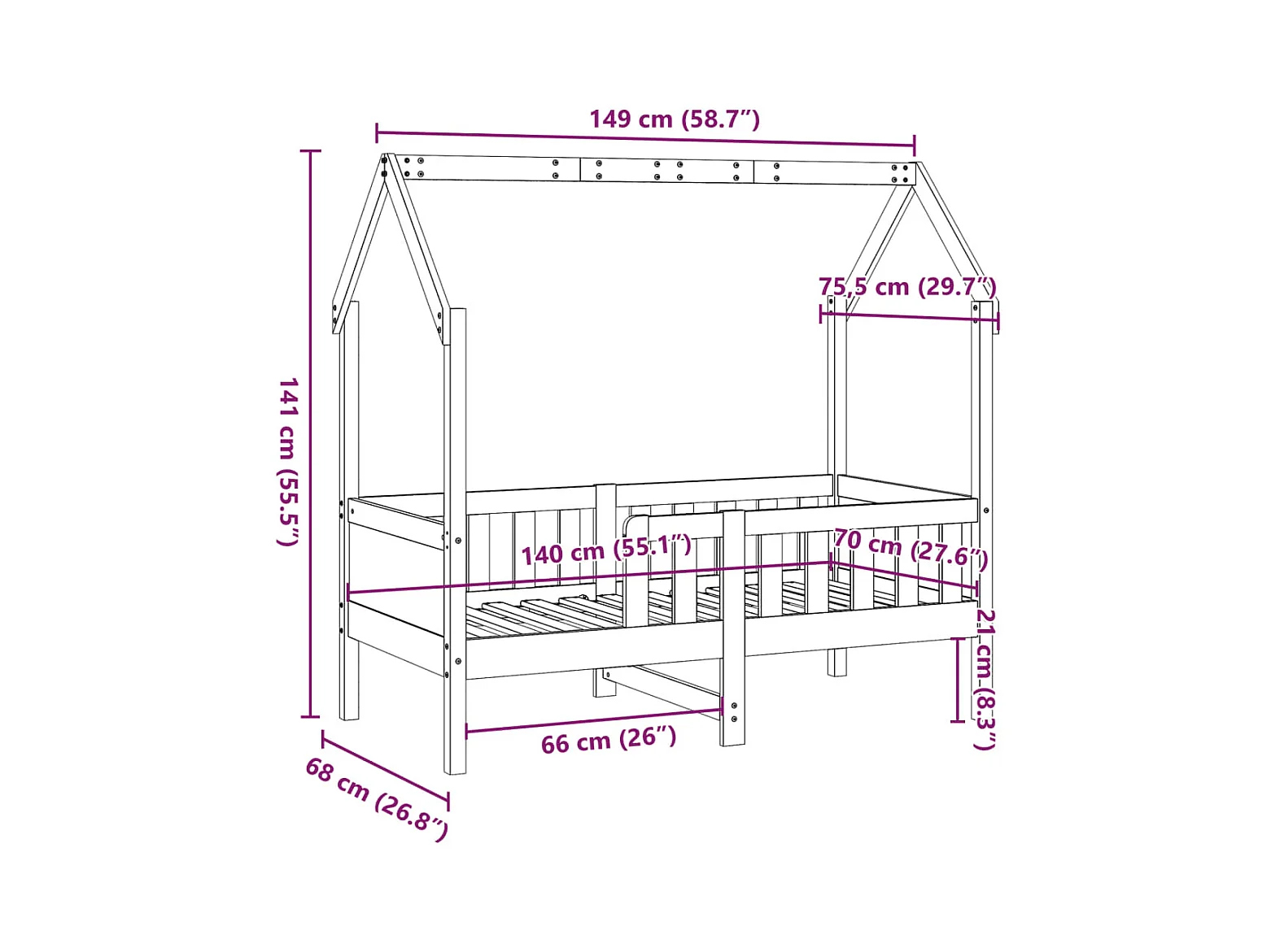 Giroletto Casetta per Bambini 70x140 cm Legno Massello di Pino
