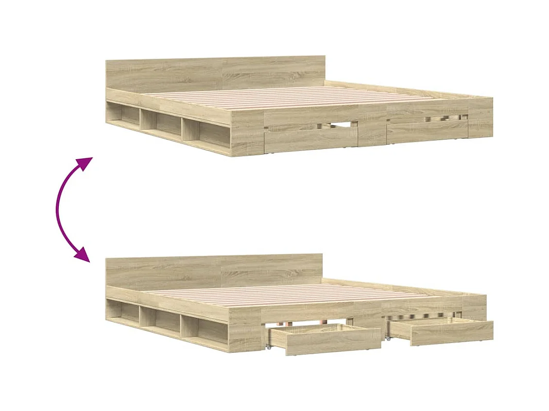 Giroletto Cassetti Rovere Sonoma 200x200 cm Legno Multistrato