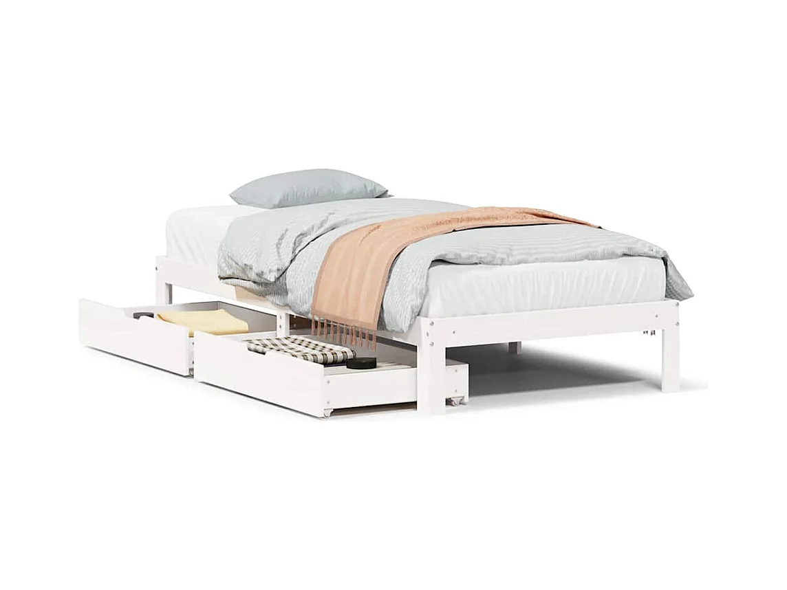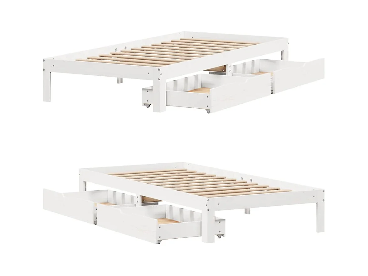 Giroletto con Cassetti Bianco 100x200 cm Legno Massello di Pino