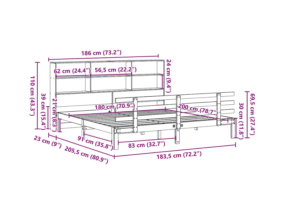 Letto Libreria senza Materasso 180x200 cm Legno Massello