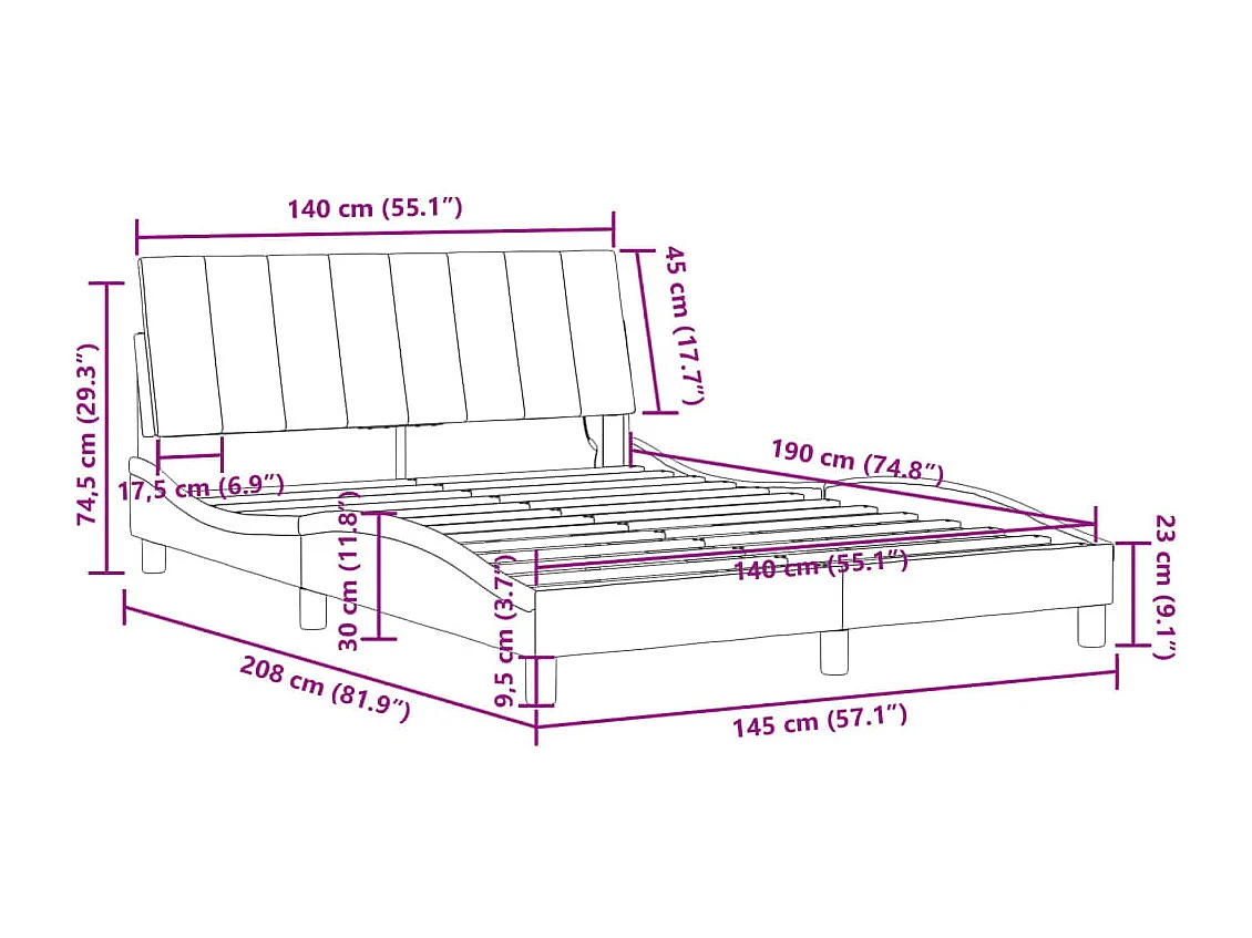 Struttura Letto Pouf senza Materasso 140x190 cm in Velluto