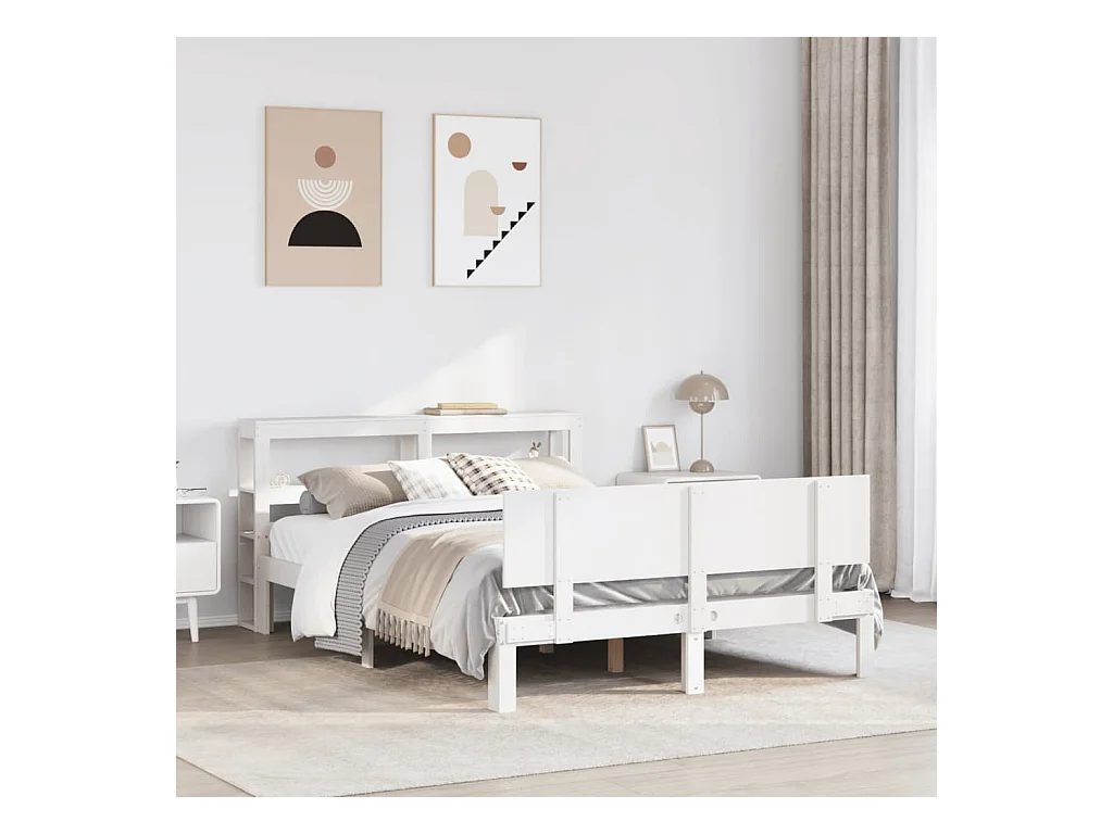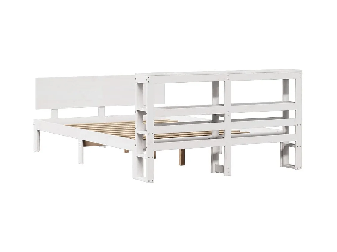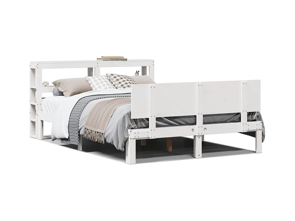 Giroletto con Testiera Bianco 135x190 cm Legno Massello di Pino