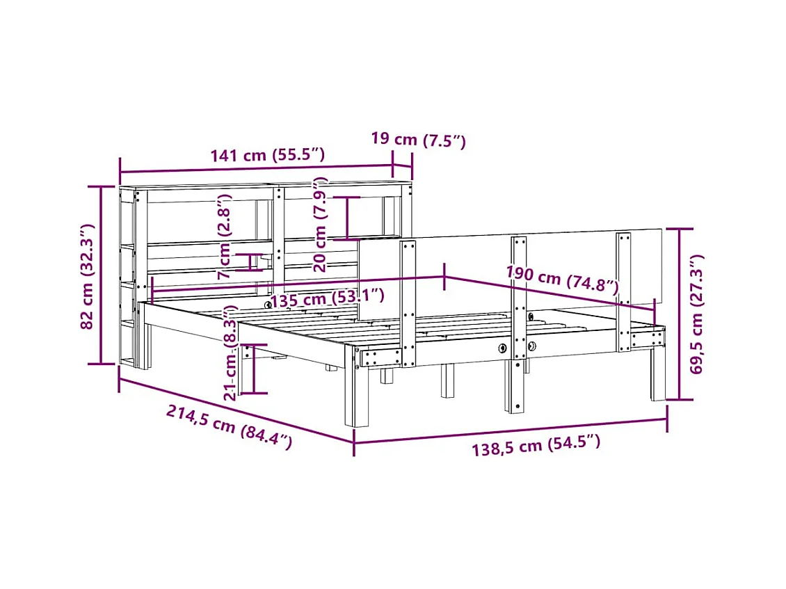 Letto senza Materasso Bianco 135x190 cm Legno Massello di Pino
