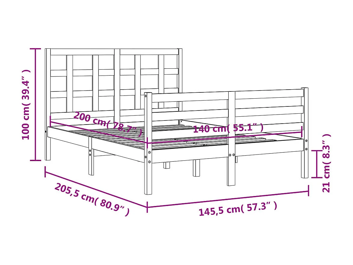 Letto Extra Lungo senza Materasso Bianco 140x220 cm in Pino