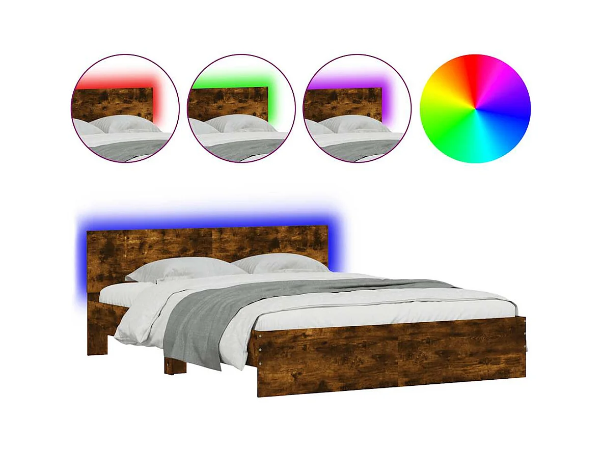 Giroletto con Testiera e LED Rovere Fumo 150x200 cm