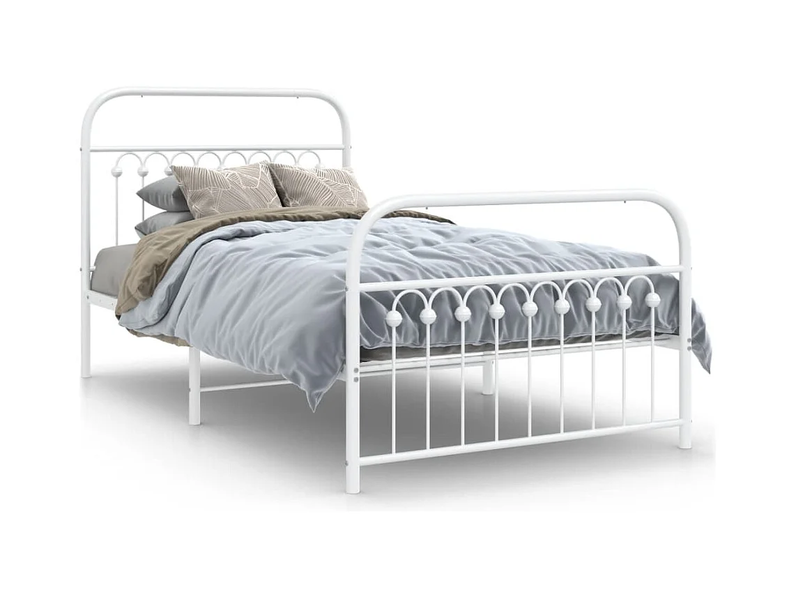 Giroletto con Testiera e Pediera Metallo Bianco 100x190 cm