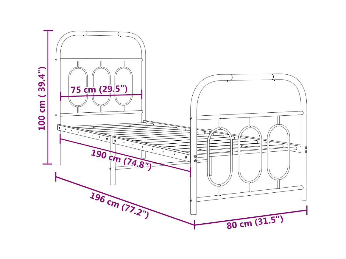 Giroletto con Testiera e Pediera Metallo Bianco 75x190 cm