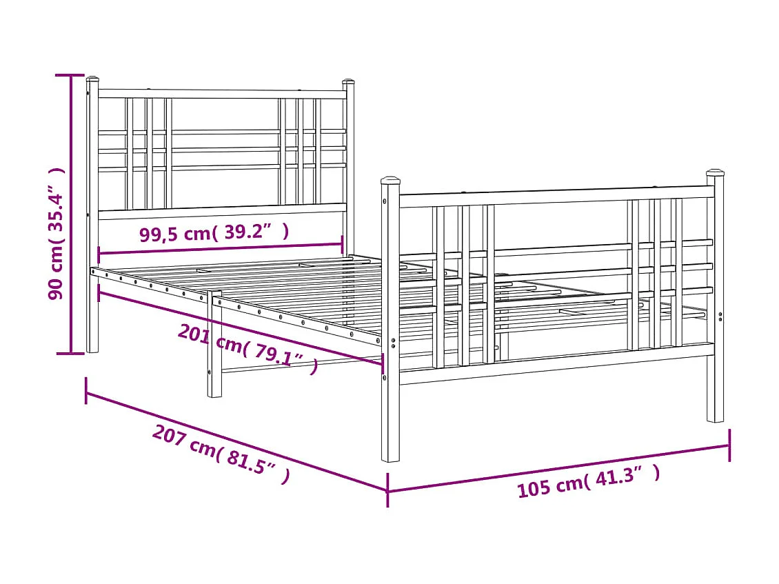 Giroletto con Testiera e Pediera Metallo Nero 100x200 cm