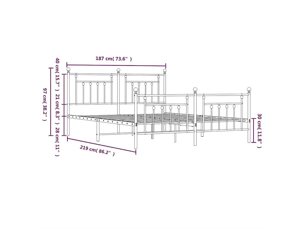 Giroletto con Testiera e Pediera Metallo Nero 183x213 cm