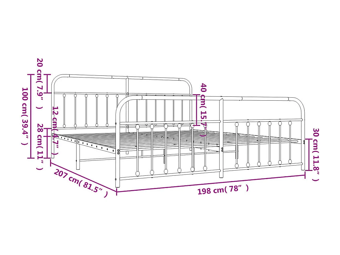 Giroletto con Testiera e Pediera Metallo Nero 193x203 cm