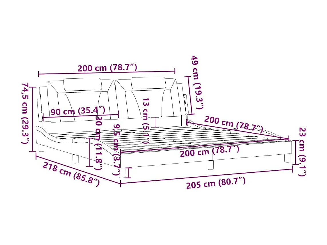 Giroletto con LED senza Materasso Nero 200x200 cm in Velluto