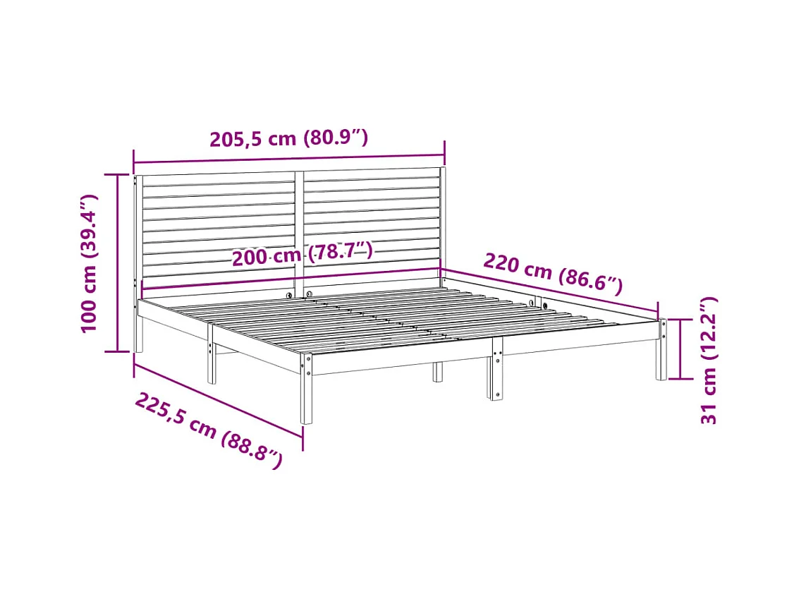 Letto Extra Lungo senza Materasso Bianco 200x220 cm in Pino