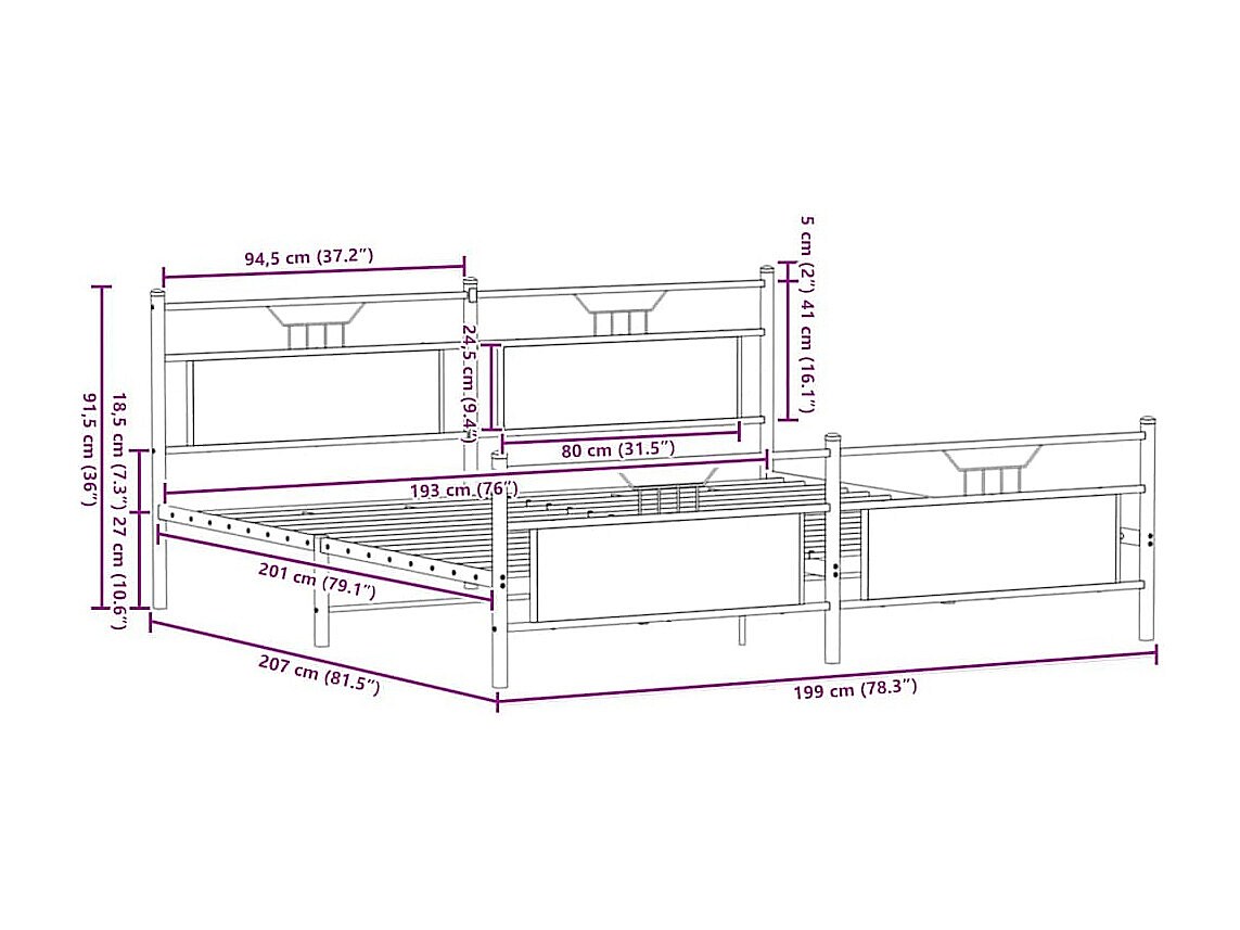 Giroletto senza Materaso in Metallo Rovere Sonoma 193x201 cm
