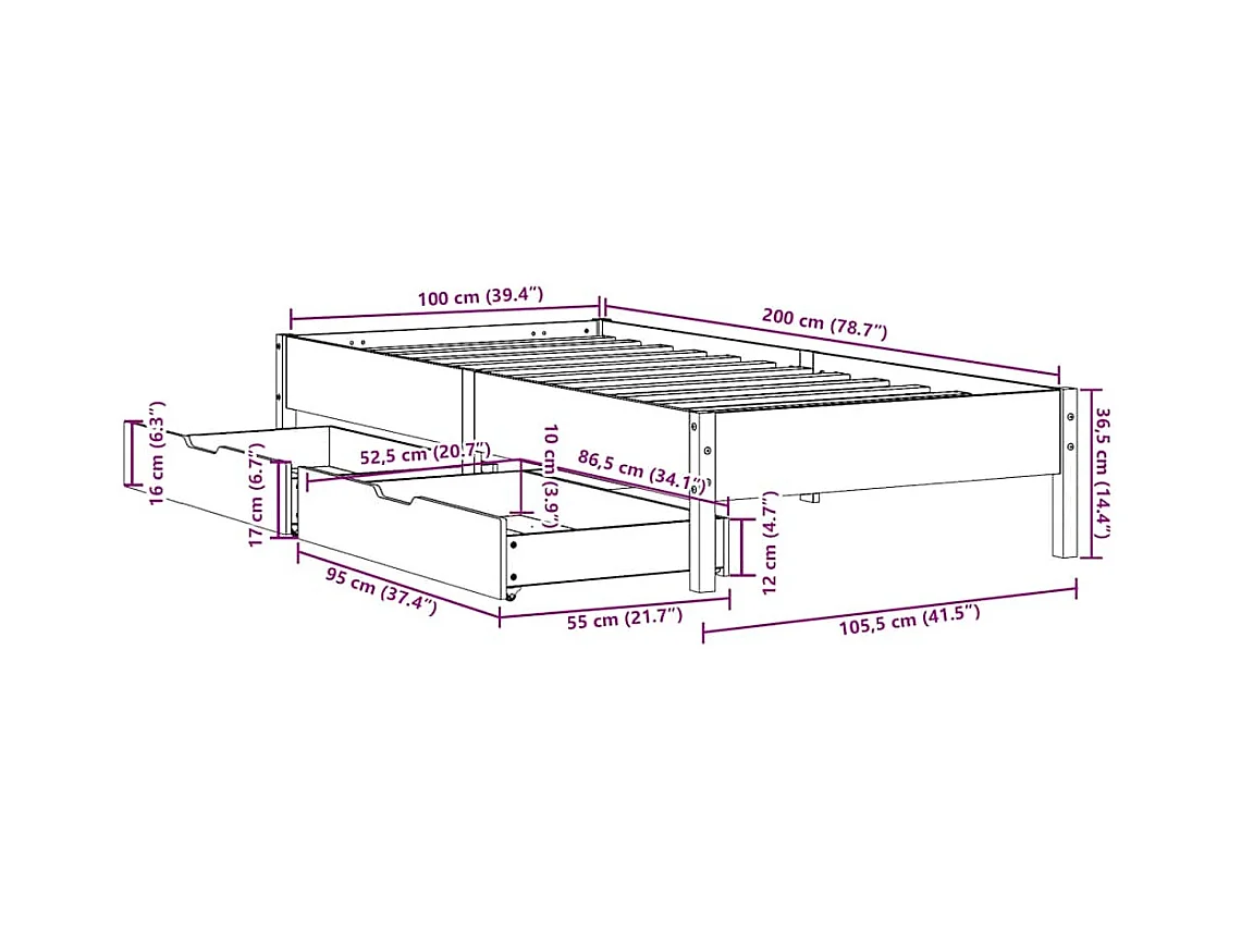 Giroletto senza Materasso 100x200 cm in Legno Massello di Pino