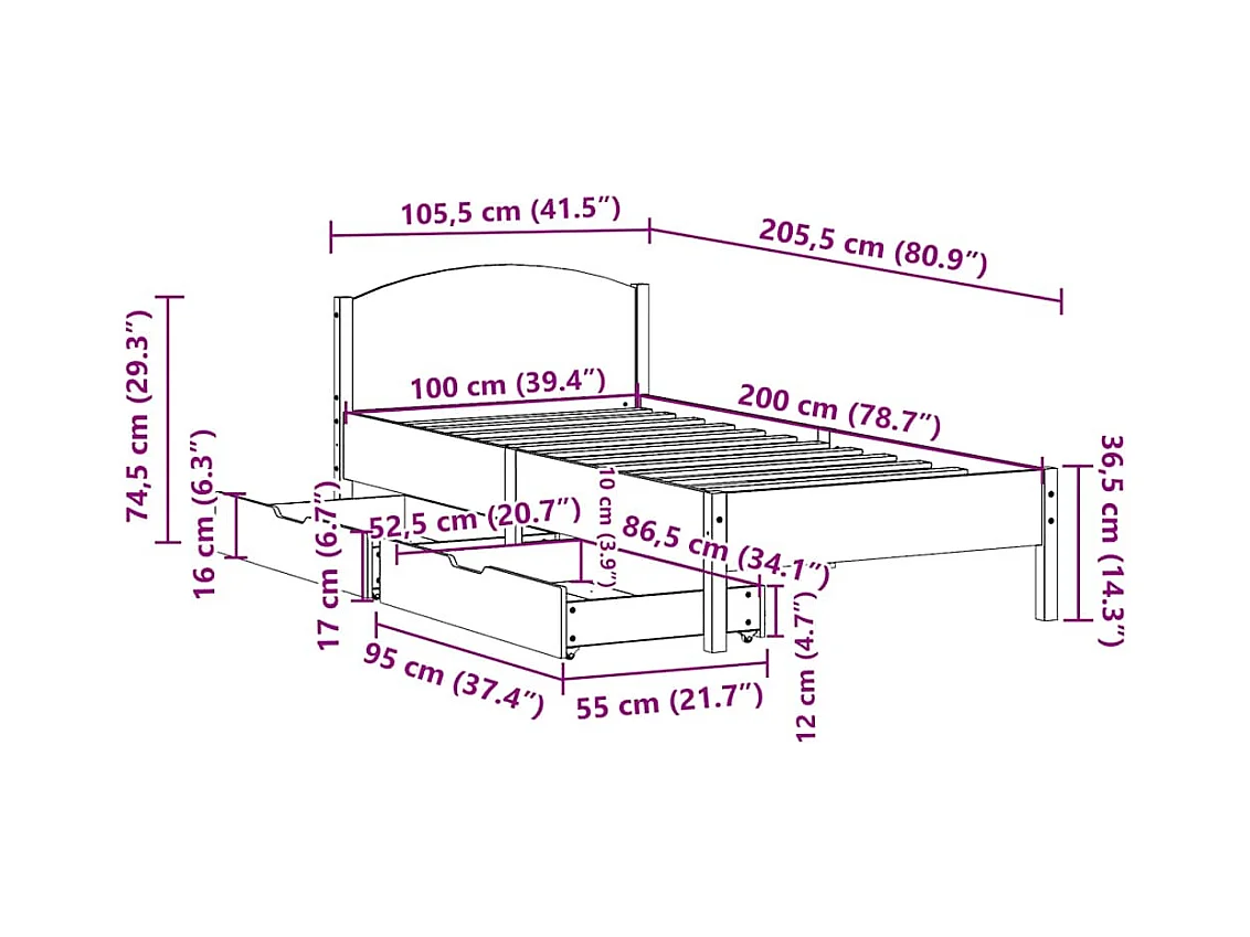 Giroletto senza Materasso 100x200 cm in Legno Massello di Pino