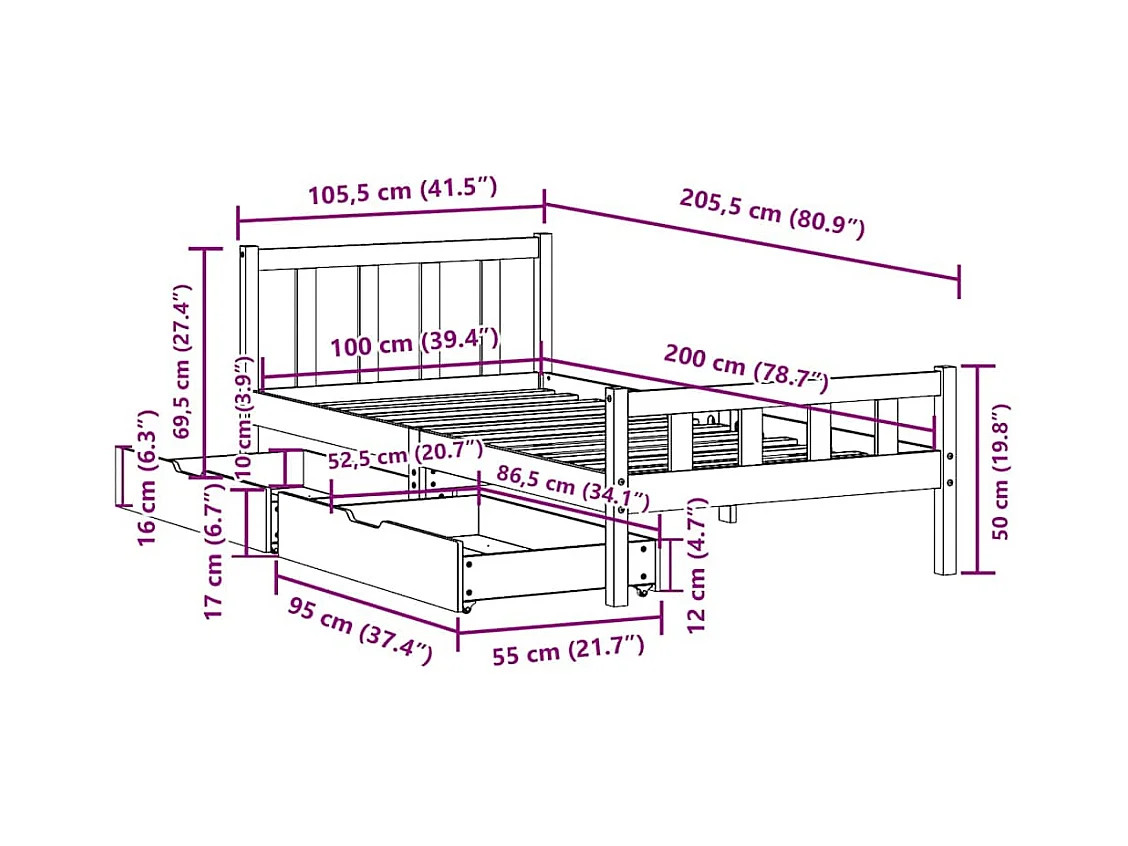 Giroletto senza Materasso 100x200 cm in Legno Massello di Pino