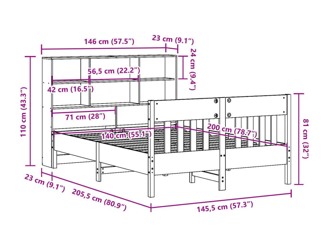 Letto senza Materasso 140x200 cm in Legno Massello di Pino