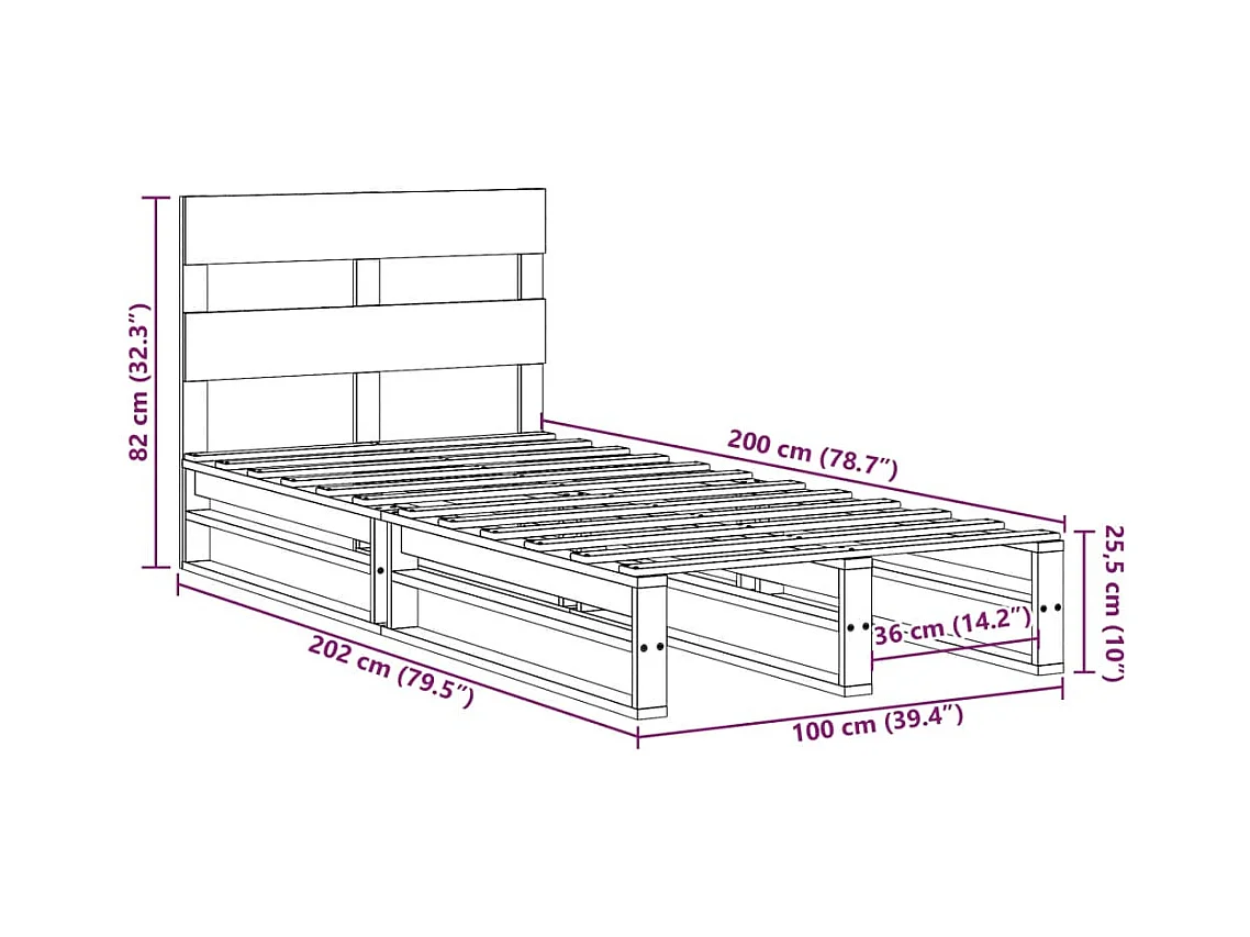 Giroletto senza Materasso Bianco 100x200 cm Legno Massello Pino