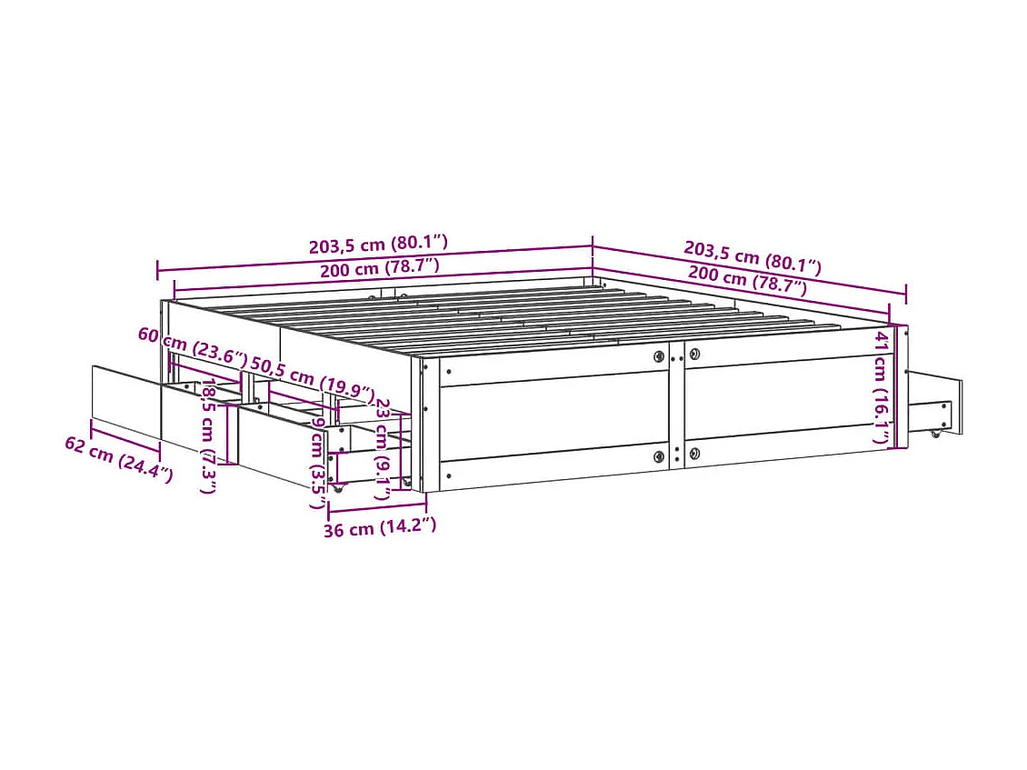 Giroletto senza Materasso con Cassetti 200x200 cm Massello Pino