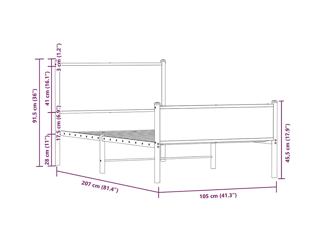 Giroletto senza Materasso in Metallo Rovere Marrone 100x200 cm