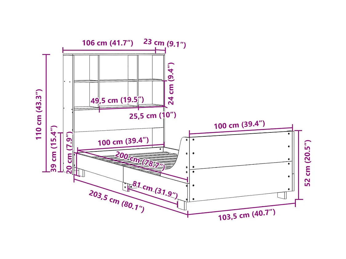 Giroletto con Testiera Marrone Cera 100x200 cm Massello Pino