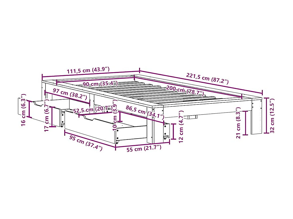 Giroletto senza Materasso Marrone Cera 90x200 cm Massello Pino