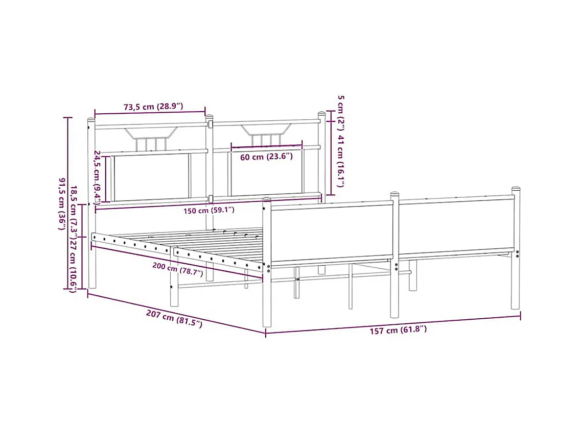 Letto senza Materasso 150x200 cm in Legno Massello di Pino